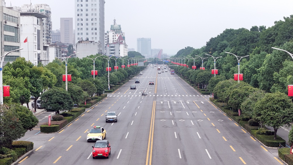 与此同时,1345面鲜艳的五星红旗已在咸宁大道、银泉大道、桂乡大道等主干道路旁统一悬挂,一抹抹“中国红”格外耀眼,成为一道亮丽的风景线。