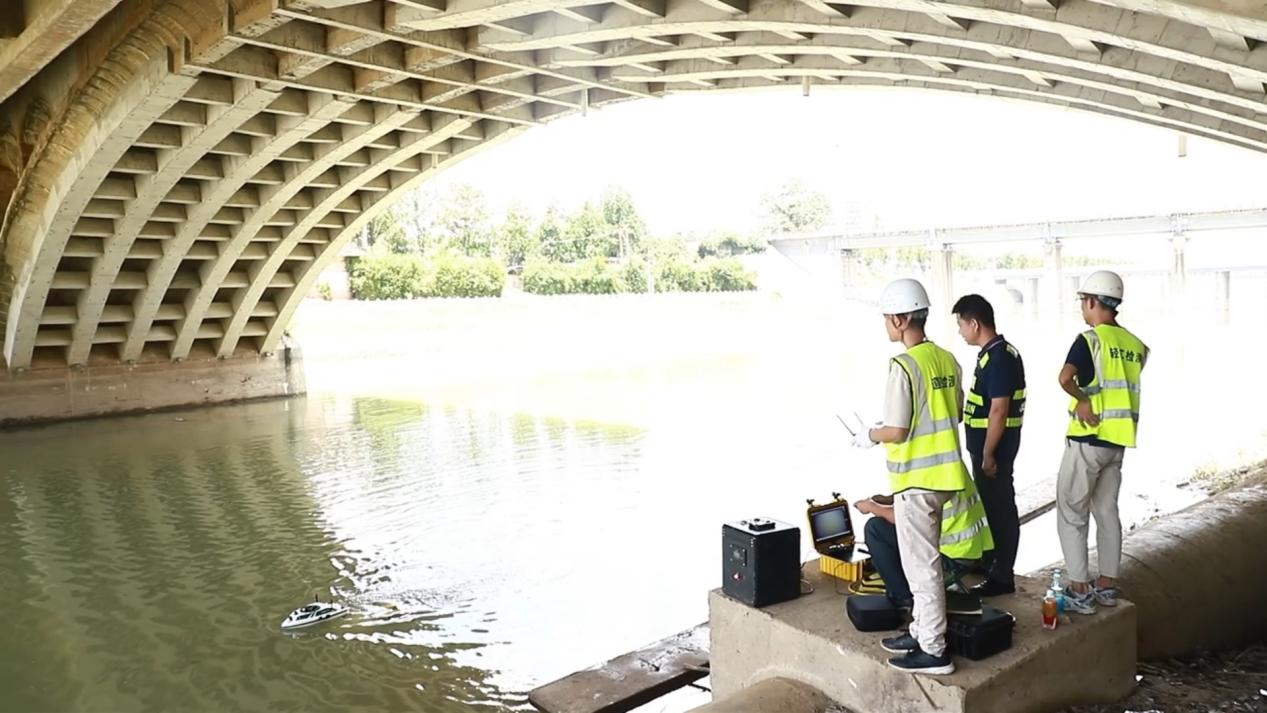 “看见无人机在桥上空飞,还有工作人员在桥下操控像小潜艇一样的机器人,感觉很先进,也对桥的安全更有信心了。”每天骑车经过金桂西桥的市民小李感叹。