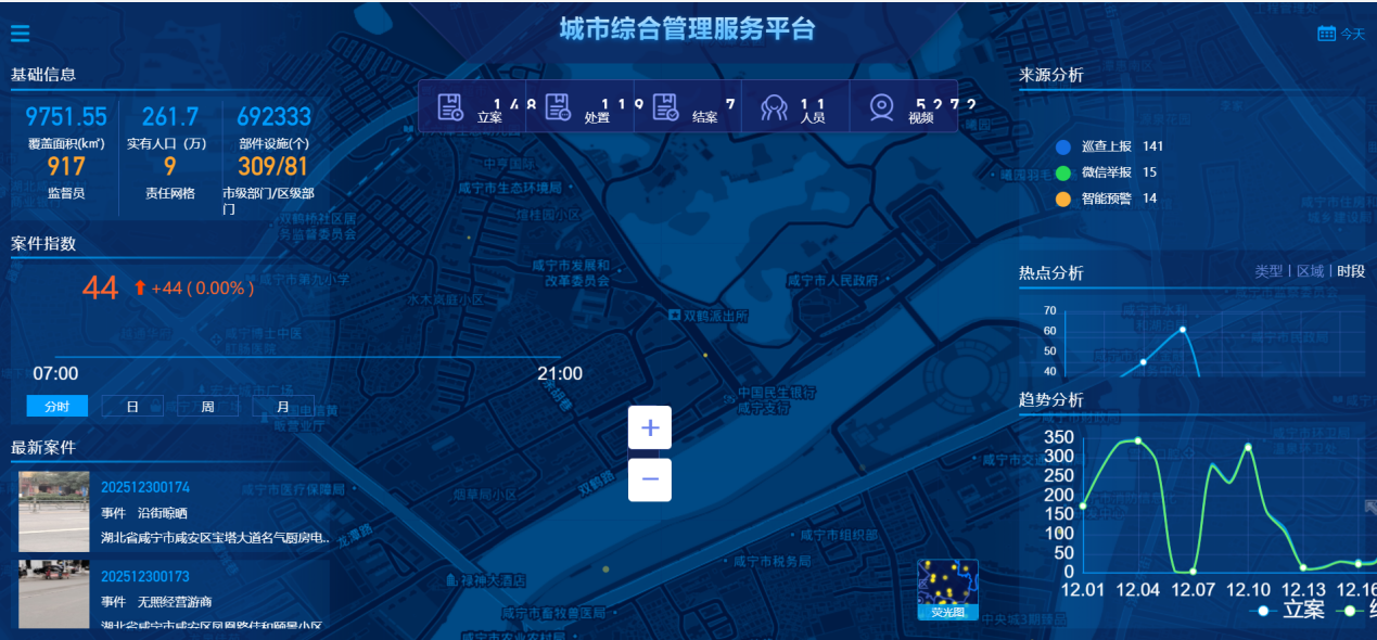 过去,城乡垃圾治理依赖“人海战术”,难免存在盲区。如今,走进咸宁市智慧城管指挥中心,巨大的电子屏上,各个重点区域的实时画面一览无余。这是“视频监控双模式”在发挥作用:自建探头与共享的视频资源并联成网,人工巡查与智能分析双线并行,正为攻坚行动装上了“千里眼”和“智慧脑”。